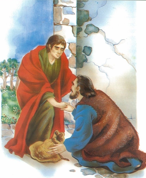 Louco de alegria por ter descoberto o seu misterioso benfeitor, lançou-se-lhe aos pés e começou a beijar-lhos com muitas lágrimas de gratidão por lhe ter salvado as filhas do desespero, da vergonha, do pecado e da morte.