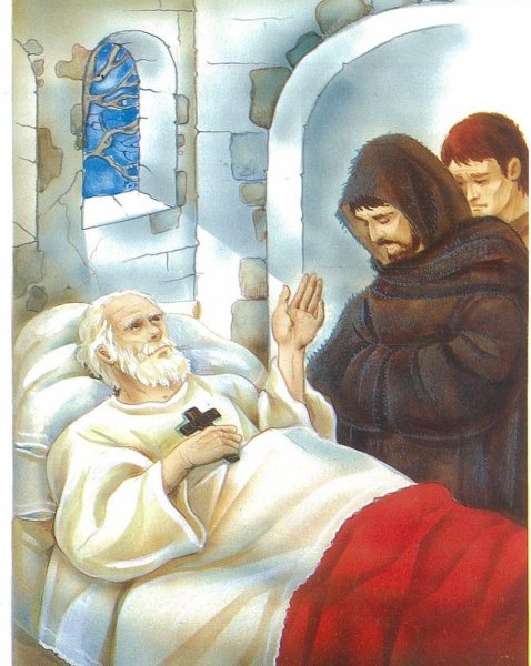 O Bispo olhou compassivo para a desolada mãe, fez sobre o menino o sinal da cruz, acompanhado por uma breve oração, e o menino levantou-se vivo e são.