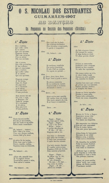 O argumento que Bráulio Caldas preparou para as danças dos estudantes aposentados do ano de 1901 foi repetido nos anos de 1912 e de 1945.