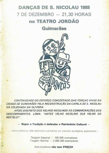 Passaste na nossa vida. Entraste no Liceu Martins Sarmento e cruzamo-nos a caminho da Festa. Deixaste-nos só Passado!... Um Passado de felizes recordações na tua exemplar vivência de Nicolino resistente, corpo pequeno para tão grande coração! Não foras tu e talvez as Danças de S. Nicolau se esfumassem de todo no mundo das coisas perdidas: o teu entusiasmo, o teu sentido de amizade, a pressa com que vinhas a trautear os ensaios, as deixas oportunas da tua memória prodigiosa...que falta! Se a parca te roubou ao nosso convívio há pouco mais de dois meses, não conseguiu furtar-te à nossa Saudade, se pretendeu perder nos nos báratros da Tristeza, mais não conseguiu senão aguçar a nossa vontade de reviver as Danças que tanto amaste mais não conseguiu senão avivar o nosso desejo de alegremente, pagarmos a Alegria em que nos contagiaste Rui Faria. Presente! Presente sempre no Mundo Nicoliano um mundo de outros mundos, sem tempo nem idade, sem diferença entre o foi e o é: um rufo sacubido das nossas caixas acompanha o trautear do Hino Nicoliano nessa via que ainda vibra na nossa saudade. Rui Fana foi Nicolino. A.A.E.L.G. É.