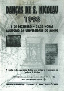 Caros Auditórioespectadores, na trágica sequência de muitas horas de penosa mas estóica presença nestes espectáculos, vem a Produção e Realização deste render-vos uma homenagem que não sendo sentida, não é menos verdadeira. Assim, com a vossa ajuda e paciência, depois de ensaios de centenas de horas, nos quais se consumiram milhares de hectolitros de destilados, tonelada e meia de castanhas e figos, duzentos rolos de papel higiénico, quatro lápis, uma esferográfica, duas folhas de papel e foram sendo progressivamente internados em casa da especialidade alguns Nicolinos cujo cérebro não resistiu. Ainda se produziu abundante descrição de todos os caminhos que conduzem a tascas e botecos deste (agora) mais pequeno concelho sentimos muito mas é tarde de mais. Agora tem V.Exas. que gramar a pastilha e sofrer na pele aquilo que para Vosotros cozinha-mos. A versão requentada, actualizada, censurada e modificada, do que anualmente de melhor se produz para palco no Mundo e talvez em Portugal. As famigeradas, durante décadas proibidas a menores de setenta e cinco anos: Danças de S.Nicolau que é exactamente o que se segue.