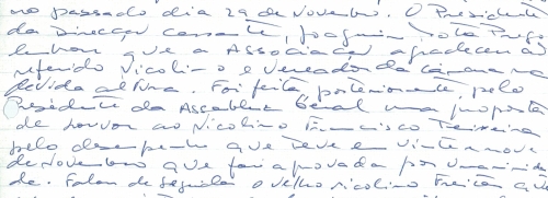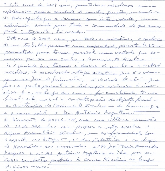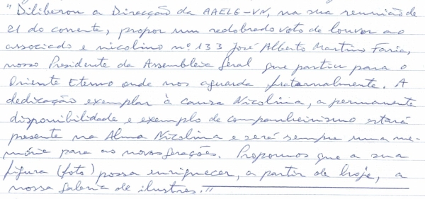 Por proposta de José Maria Magalhães foi aprovado voto de louvor por unanimidade e aclamação para o Prof. Fernando Manuel da Silva Capela Miguel pelo seu trabalho "Cartilha Nicolina".