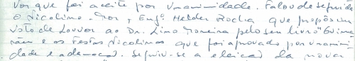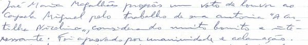Voto de Louvor proposto pelo Nicolino-Mor ao Dr.Lino Moreira pelo seu livro “Guimarães e as Festas Nicolinas” aprovado por unanimidade e aclamação.