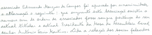 Deliberado atribuir o nº1 de sócio a António Faria Martins Sócio.