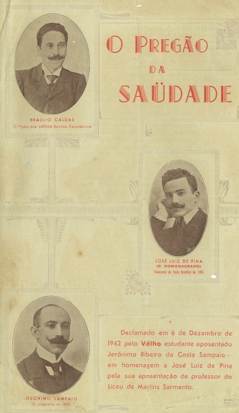 Eng°. Alberto Costa, Dr. João Mota Prego de Faria, Costa do Castanheiro, Antonino Dias de Castro, Álvaro Martins, Humberto Pinheiro e João André, todos a botar sua faladura com tanto entusiasmo e tanta elevação que ali aprendi logo como se transforma uma rojoada numa celebração onde Saudade e Amizade se misturam e os mortos nos dão a presença dos numes e vêm festejar connosco um Santo eternizado na Alegria!