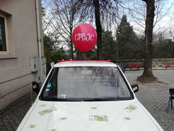 Para este ano os alunos finalistas da Escola Profissional Bento de Jesus Caraça decidiram fazer uma homenagem ao número das Roubalheiras. Imbuídos no espírito Vimaranense, os alunos da escola trocaram ideias para o tema das maçãzinhas. Como adoram brincadeira e pregar partidas, surgiu a ideia de “fabricar” notas de 100 € e distribuí-las à população. Esta ideia aliada ao fascínio pela série “Casa de Papel” levou os alunos a decorar o carro sob tons de vermelho. Associaram a esta decoração um balão com a inscrição "roubalheiras" que, logo no início do cortejo, decidiu fazer como o dinheiro nas nossas carteiras...e fugiu!