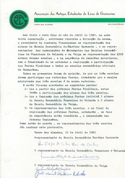 Em 1982 foi assinado um acordo entre as escolas com secundário da cidade de Guimarães,